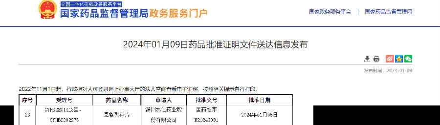 恩格列凈片獲批喜訊